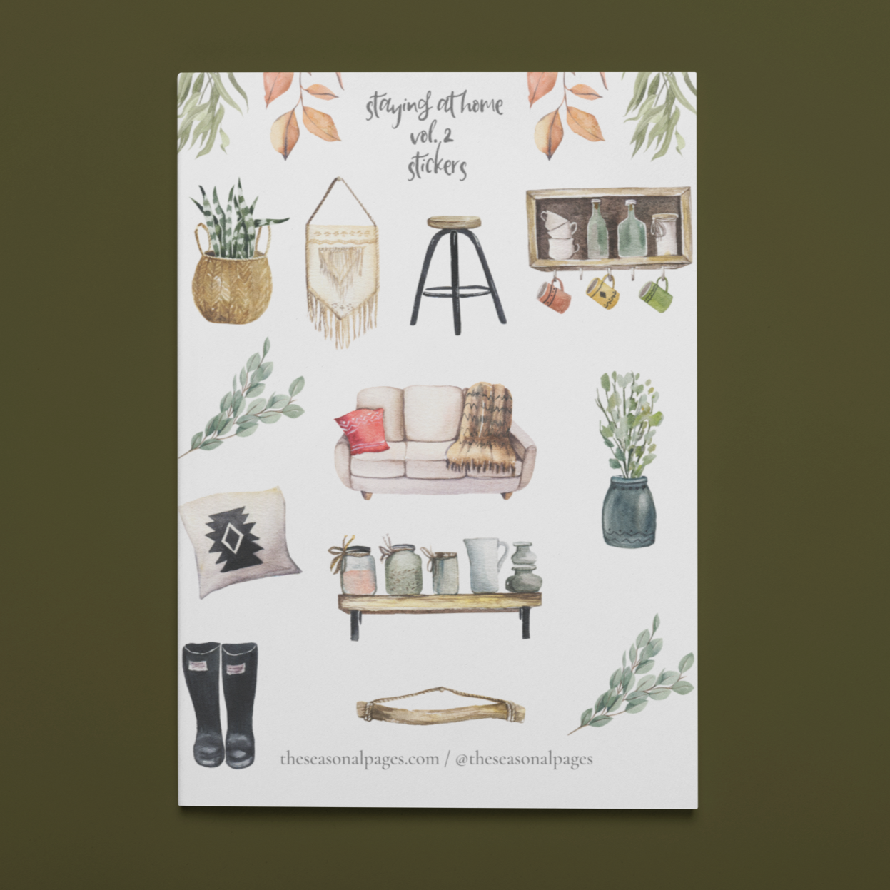 Printable Staying At Home Vol. 2 Sticker Set is part of The Seasonal Page's collection of printable stickers. This product is an instant download containing one PDF file with multiple designs that are high quality and placed on a Letter size page, which can fit most printers and instructions in a zip file. When you purchase the printable design, it will be sent to you alongside instructions to your email in a zip file. This is not a mailed physical copy but a printable designs. The colors of the printable can vary based on the computer screen.