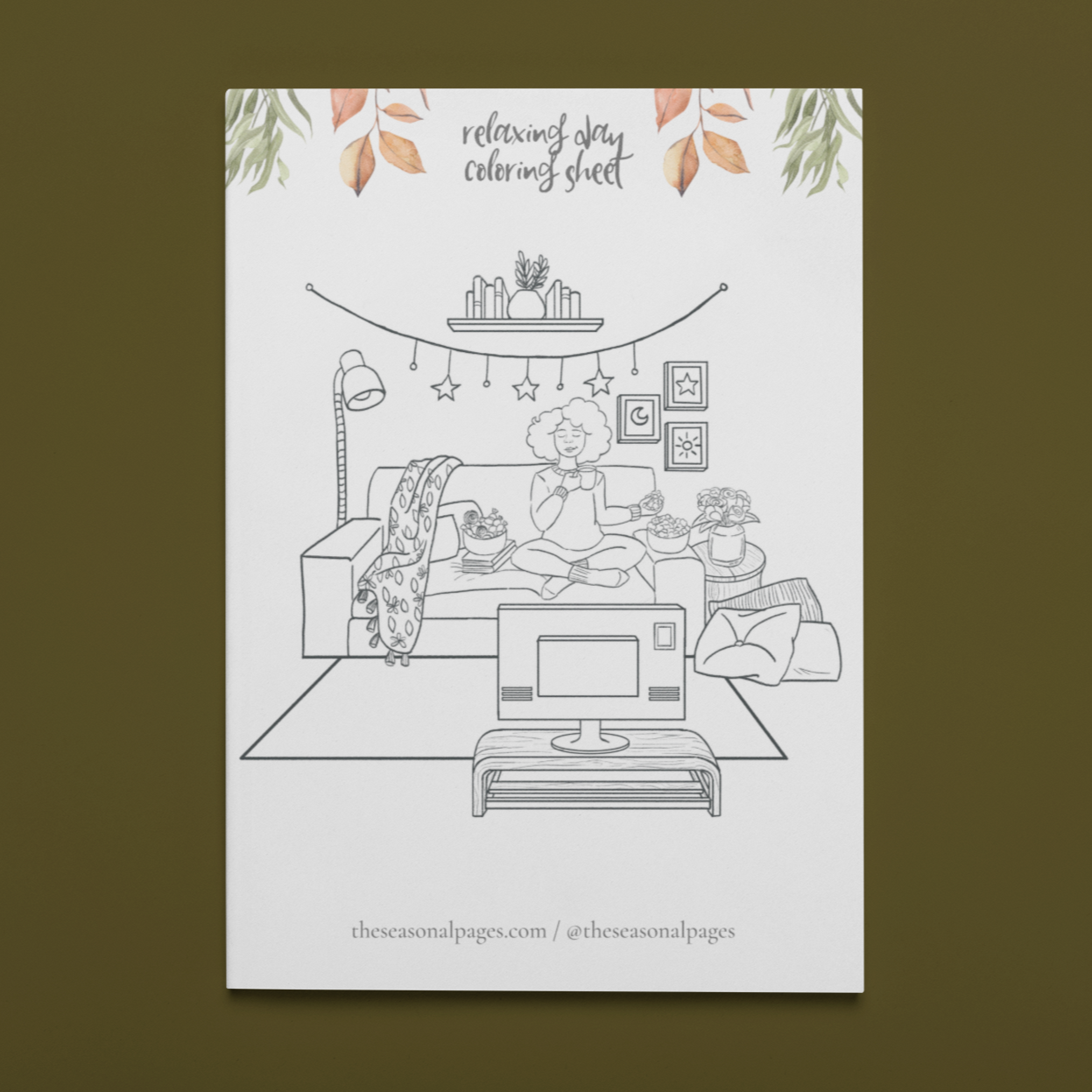 Relaxing Day Coloring Page Printable is part of The Seasonal Page's collection of printable coloring pages. This product is an instant download containing one PDF file, one JPG file, and one PNG file with one design that is high quality and placed on a Letter size page, which can fit most printers and instructions in a zip file. When you purchase the printable design, it will be sent to you alongside instructions to your email in a zip file. This is not a mailed physical copy but a printable designs. The colors of the printable can vary based on the computer screen.